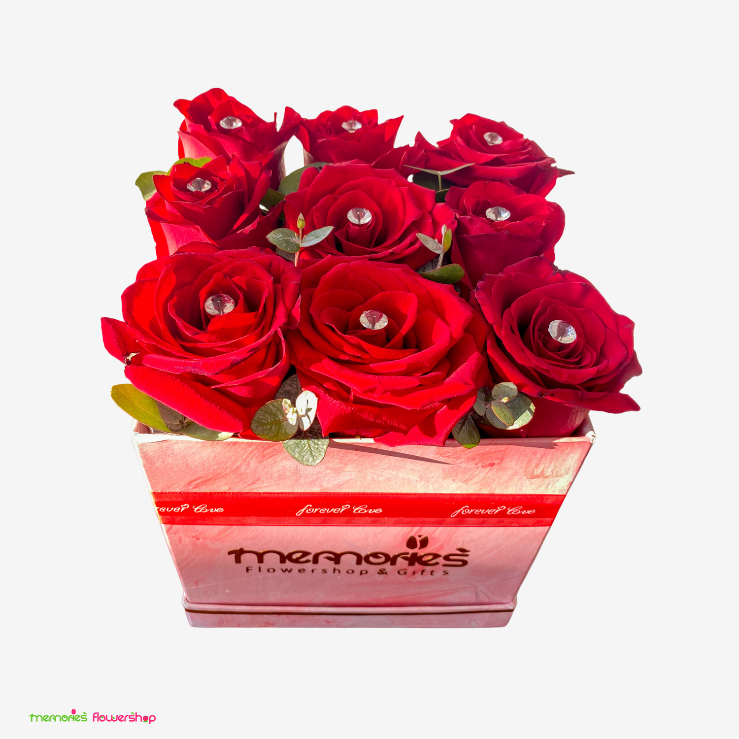 El arreglo floral Cristales de amor es una exquisita combinación de 9 rosas de Ecuador, decoradas con cristales y acompañadas de eucalipto, presentadas en una base fina. Este elegante arreglo es perfecto para expresar amor y elegancia en ocasiones especiales. Las rosas, frescas y vibrantes, junto con los cristales y el eucalipto, crean una combinación única y llena de significado. Ideal para sorprender a alguien especial y transmitir emociones profundas.