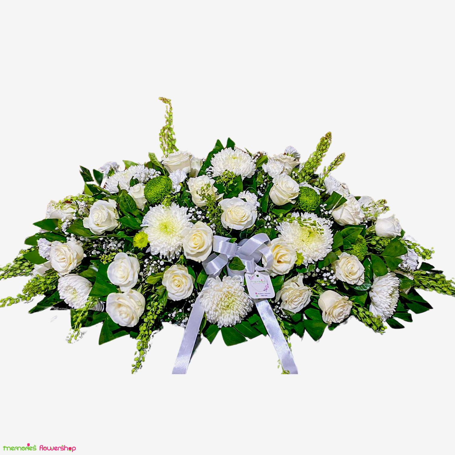 Categorías: Arreglo Floral Natural, Claveles, Condolencias, Palmas de Condolencias, Product Options Condolencias, Rosas Blancas