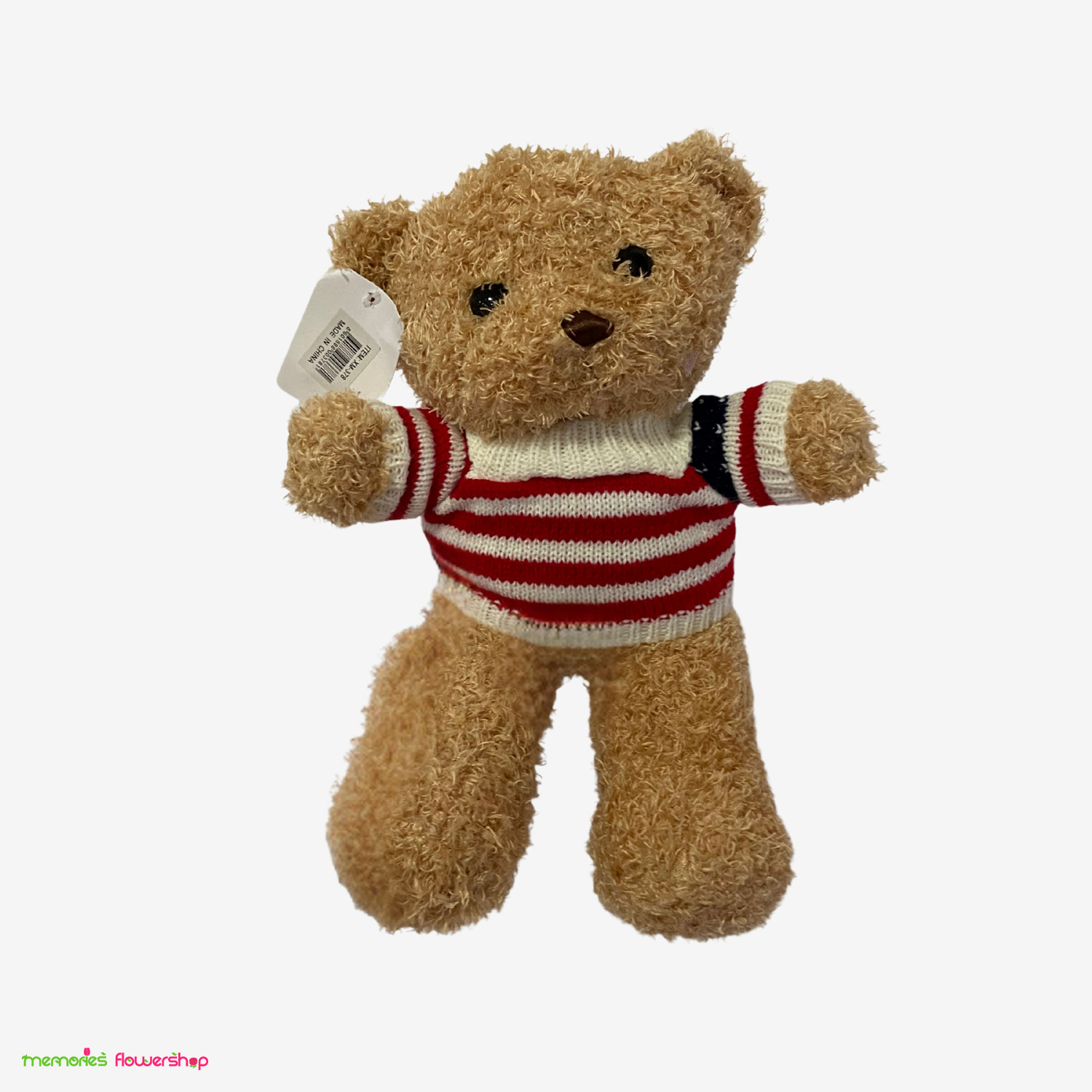 Este adorable osito de peluche, con su suave pelaje rizado y una camiseta a rayas rojas y blancas, es el compañero perfecto para cualquier ocasión. Ideal para regalos infantiles o como detalle tierno, este osito transmite cariño y alegría. Su diseño clásico y su encantadora apariencia lo convierten en un regalo inolvidable para sorprender a tus seres queridos.