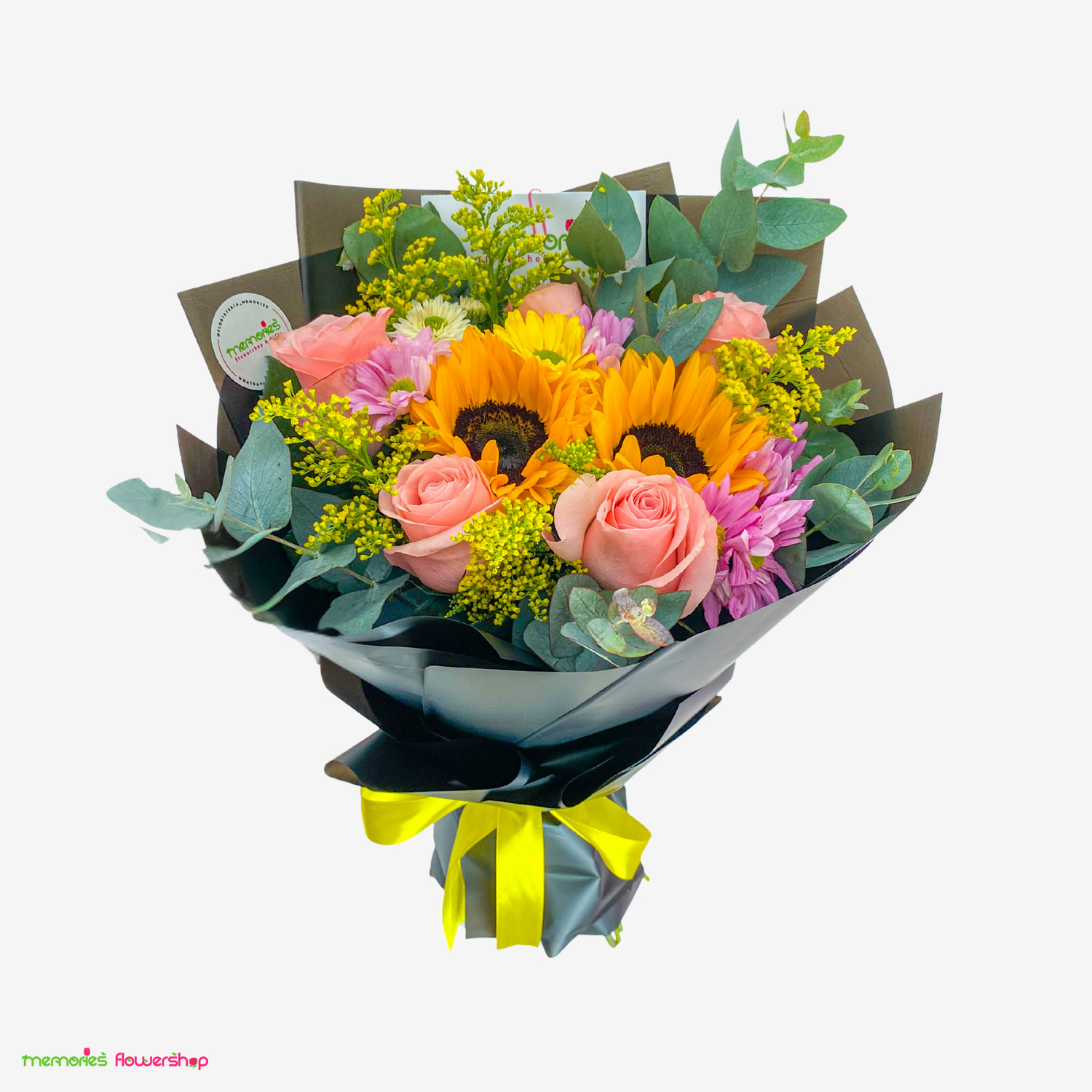 El ramo “Para Ti” es una expresión de cariño y admiración, compuesto por rosas rosadas de Ecuador, girasoles, solidago, baby breath, eucalipto y flores de complemento. Este arreglo floral es ideal para sorprender a esa persona especial en ocasiones como cumpleaños, aniversarios o simplemente para demostrar tu afecto. Cada flor ha sido cuidadosamente seleccionada para garantizar frescura y durabilidad, creando un ramo que será el centro de atención en cualquier celebración.